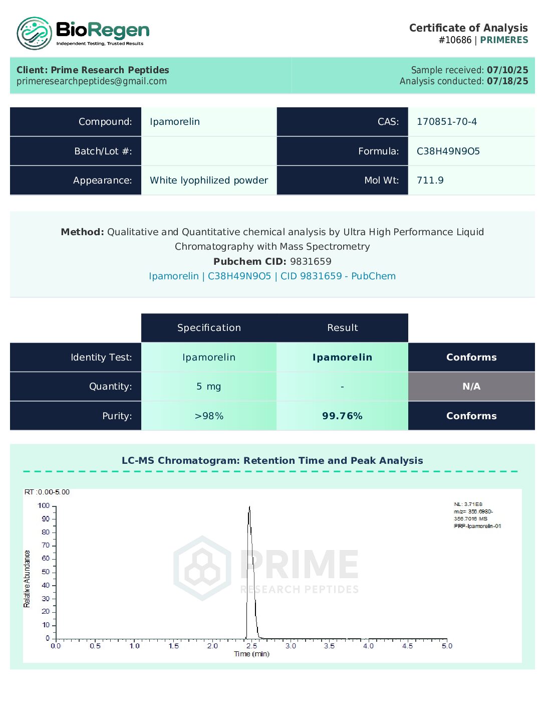 Purity: >99% | Form: Raw Lyophilized Powder