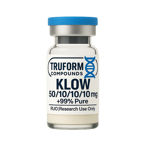 Klow Blend is a comprehensive peptide formulation combining GHK-Cu, KPV, BPC-157, and TB-500—each studied for their roles in tissue repair, inflammation modulation, and regenerative signaling. Research in non-human models investigates this blend for its potential to support cellular recovery, dermal regeneration, and immune response mechanisms across various tissue types.