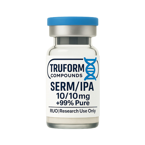 This blend combines Sermorelin, a GHRH analog, with Ipamorelin, a selective ghrelin receptor agonist. Researchers study this combination in non-human models for its potential synergistic effects on growth hormone signaling and endocrine response patterns.