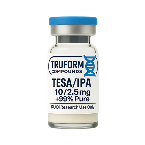 This blend combines Tesamorelin, a stabilized GHRH analog, with Ipamorelin, a selective ghrelin receptor agonist. Researchers utilize this combination in non-human models to explore potential complementary effects on GH signaling, pulsatility, and receptor interaction.