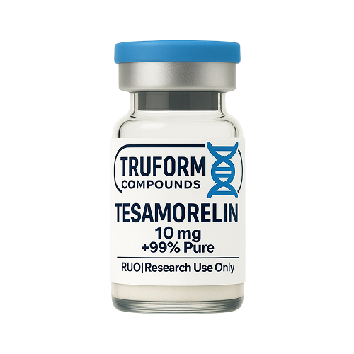 Tesamorelin is a synthetic peptide analog of GHRH (growth hormone-releasing hormone) being studied for its effects on GH secretion in controlled laboratory environments. Research in non-human models focuses on its stability, receptor affinity, and endocrine-related pathways.