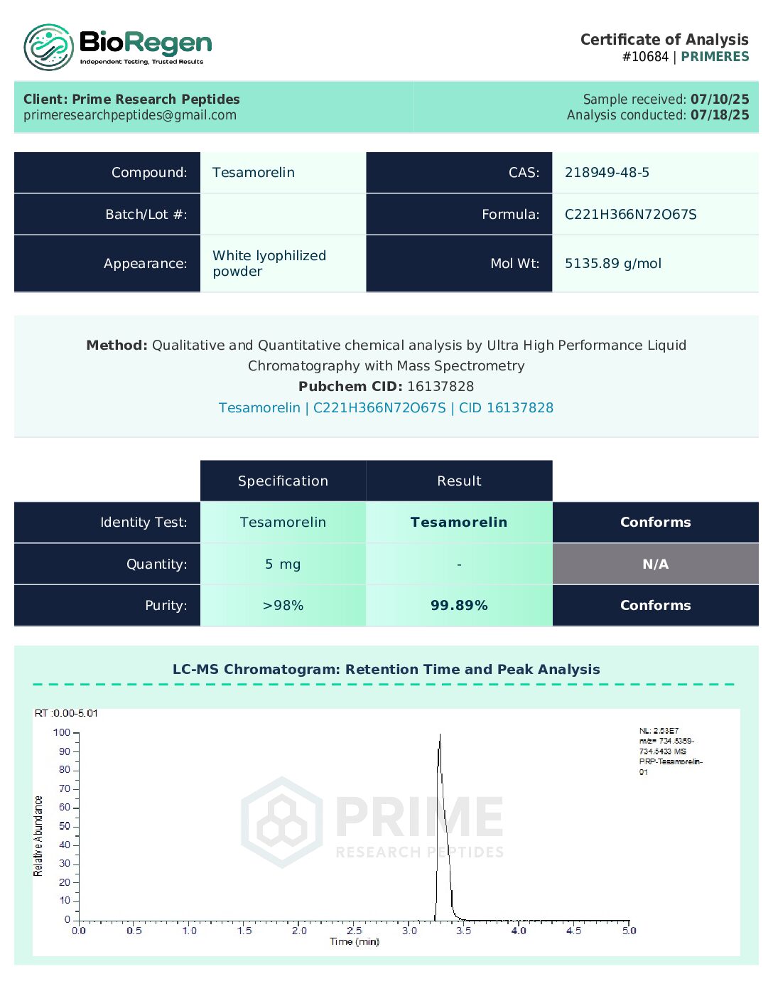Purity: >99% | Form: Raw Lyophilized Powder
